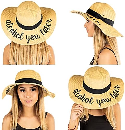 This 100% paper sun hat is lightweight yet thick and soft, offering a luxurious feel. The hat fits most with a height of 4.5 inches and a 4-inch brim; the 24-inch circumference can be adjusted with an internal drawstring. Stylish for ladies, teens, and tweens, it features bold cursive lettering. Versatile, it pairs well with everything from dresses to swimsuits.