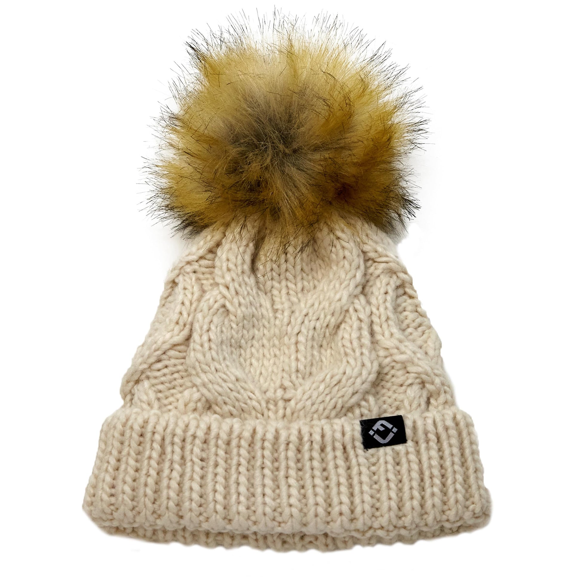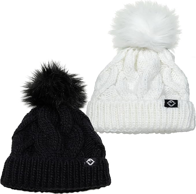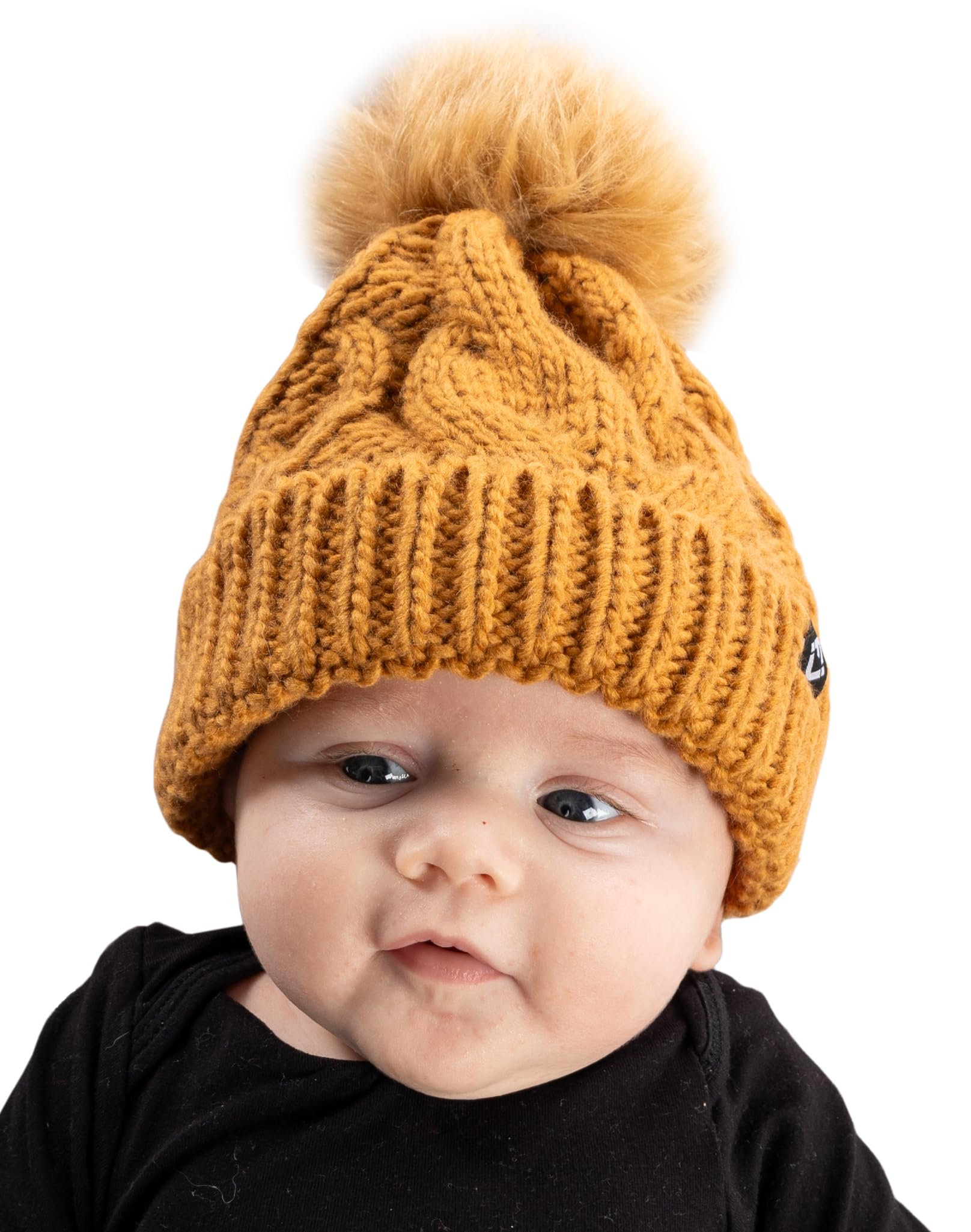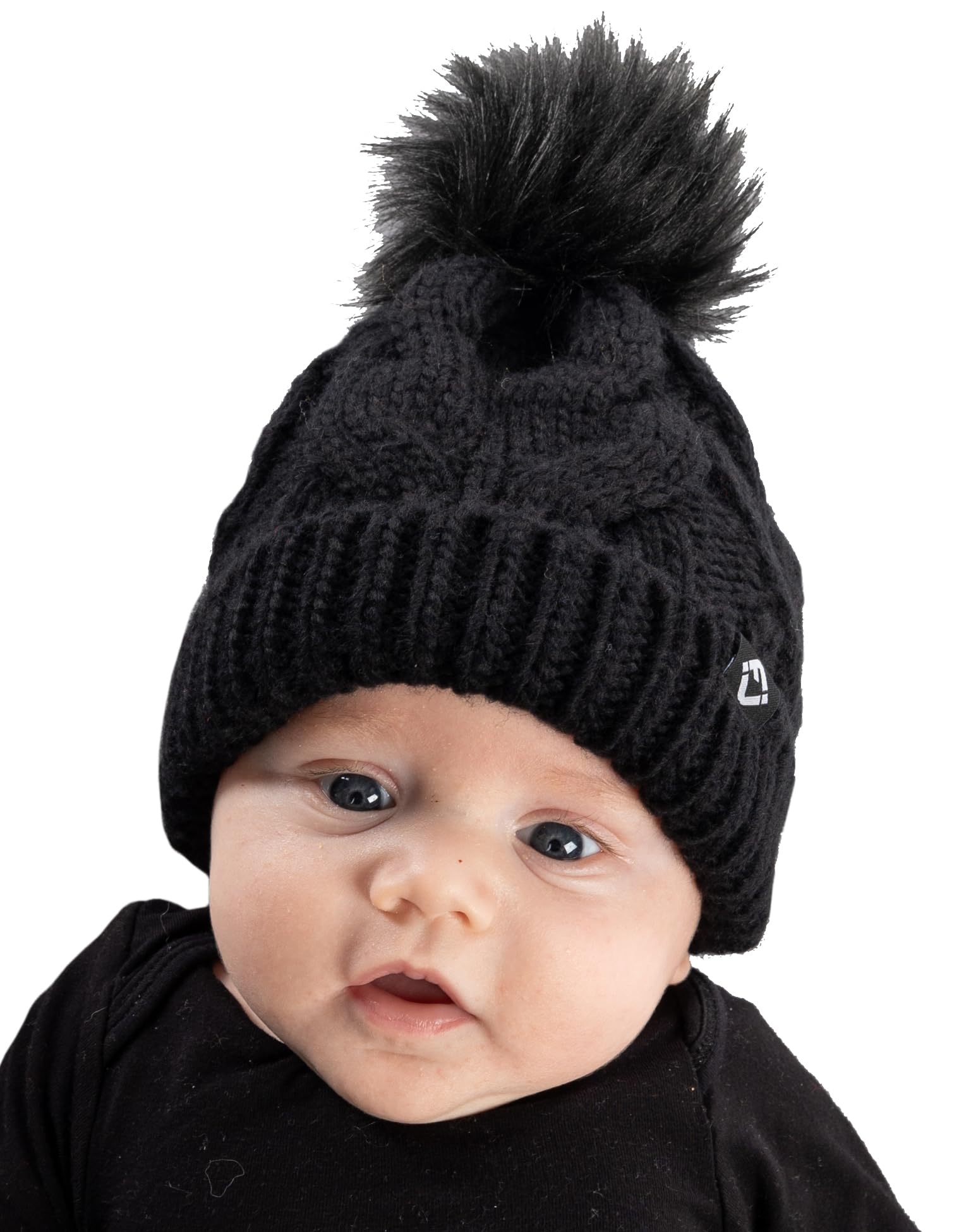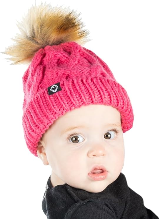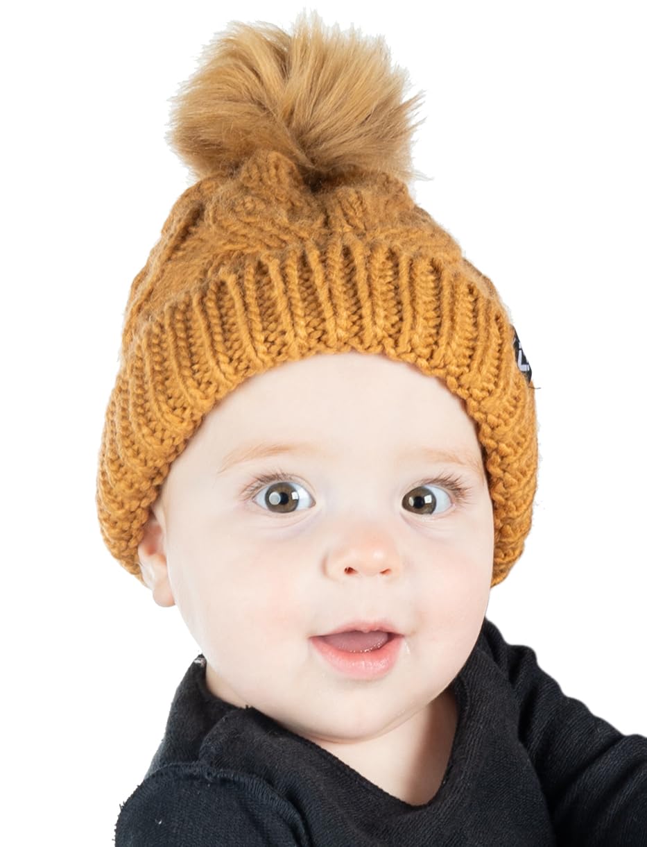 - GREAT QUALITY: Our pom pom beanie for babies and toddlers is crafted from 100% acrylic, giving it long-lasting durability and a luxurious soft touch. The soft fleece lining that covers your little ones’ ears will keep them comfortable in the harshest of weather. The cable knit pattern is intricately woven for a luxurious look and feel and is made to endure everyday wear and tear. The pom-pom is crafted with high-density faux fur that keeps its shape and appearance over time. Hand wash only.