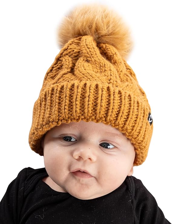 - WHY YOU’LL LOVE IT: You will love this beanie for its super soft 100% acrylic material and fleece lining which offers unbeatable warmth and comfort. The trendy cable-knit design and adorable color-matched pom-pom add a dash of style to any outfit and the stretchable fabric ensures a snug yet comfortable fit for various baby head sizes, meaning it can grow with your child through multiple winter seasons. Easy to care for and durable, this beanie meets the practical needs of busy parents!