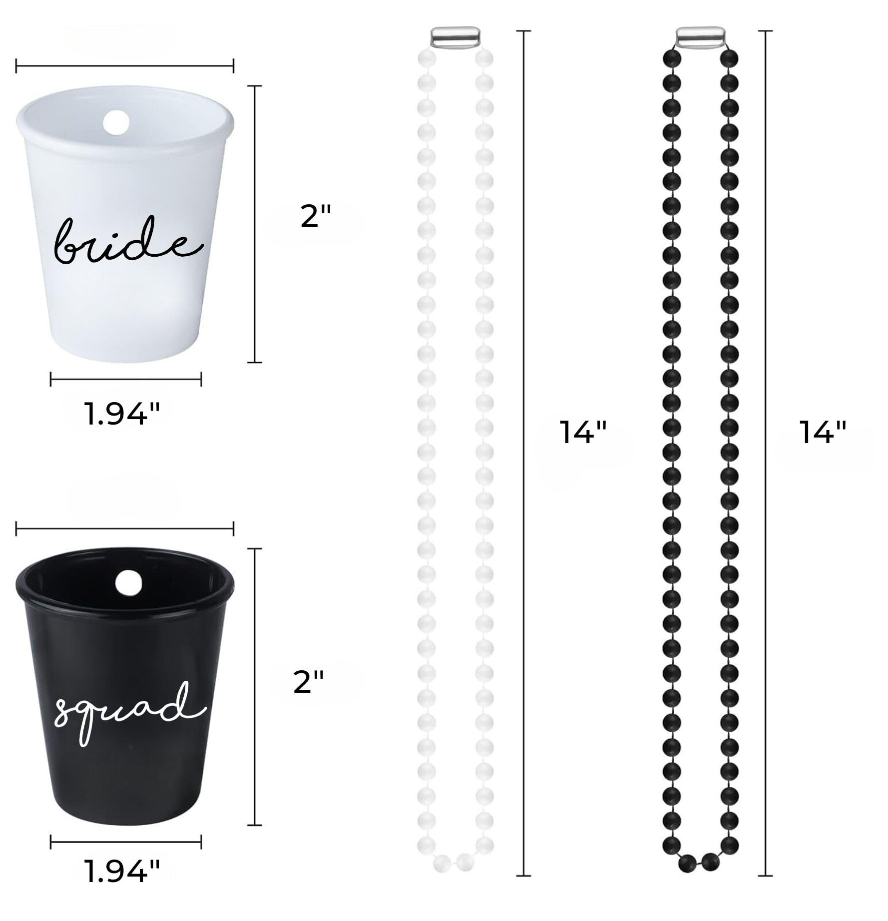 - GREAT LOOK: Elevate your party attire with our beaded rope shot glass necklaces! Designed to match the theme and excitement of bachelorette parties, bridal showers, and other festive event. Each necklace comes with a fun, catchy phrase, coupled with vibrant designs to ensure you and your crew are the center of attention wherever you go. Pair them with custom napkins or personalized items to make your party unforgettable.