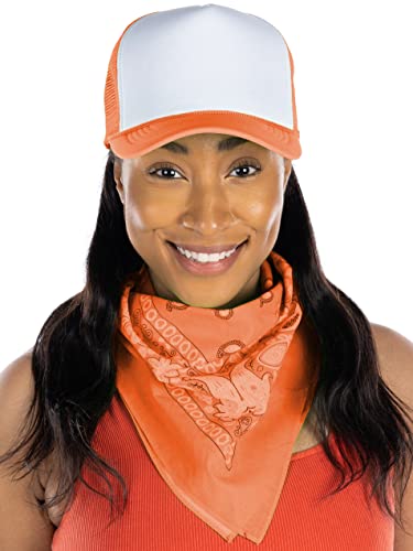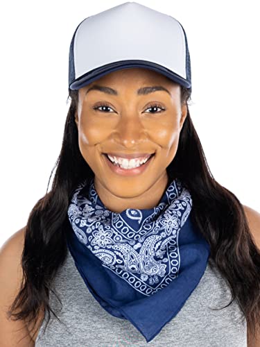 - GREAT FIT: Each bandana is a perfect square (21 inches x 21 inches) so you can wear it in whichever style you prefer. Easy to tie up or fold into a compact size, this headwrap handkerchief bandana can serve as a headband, necktie, face/head cover, scarf, wrist/head wrap, handkerchief, turban, hat, bowtie, or purse accessory. It is an essential for women, men, girls, boys, and even pets!