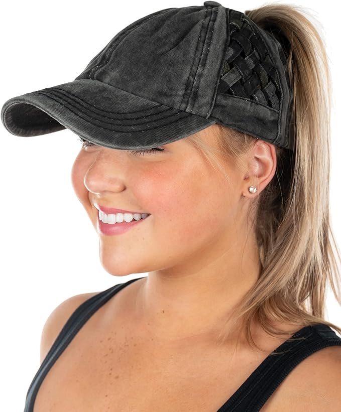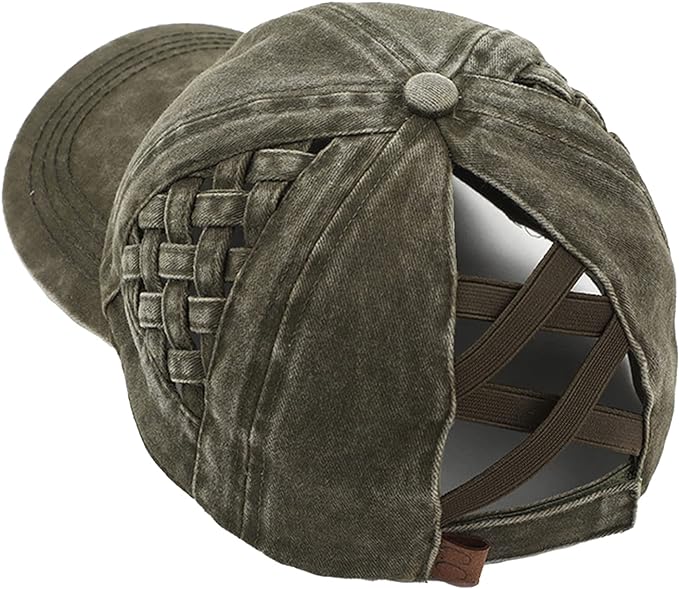 Basketweave Criss Cross Ponytail Hat by Funky Junque