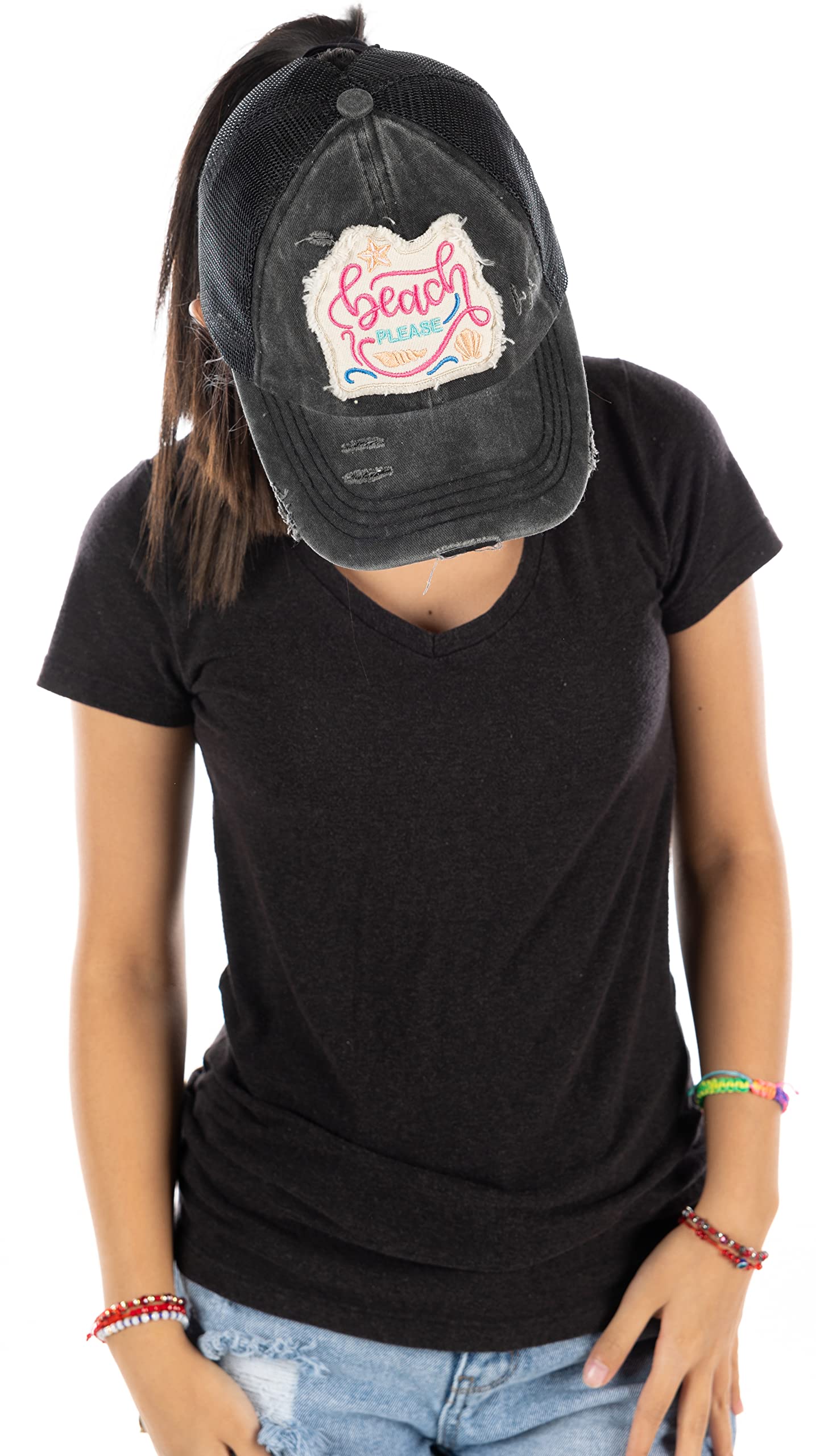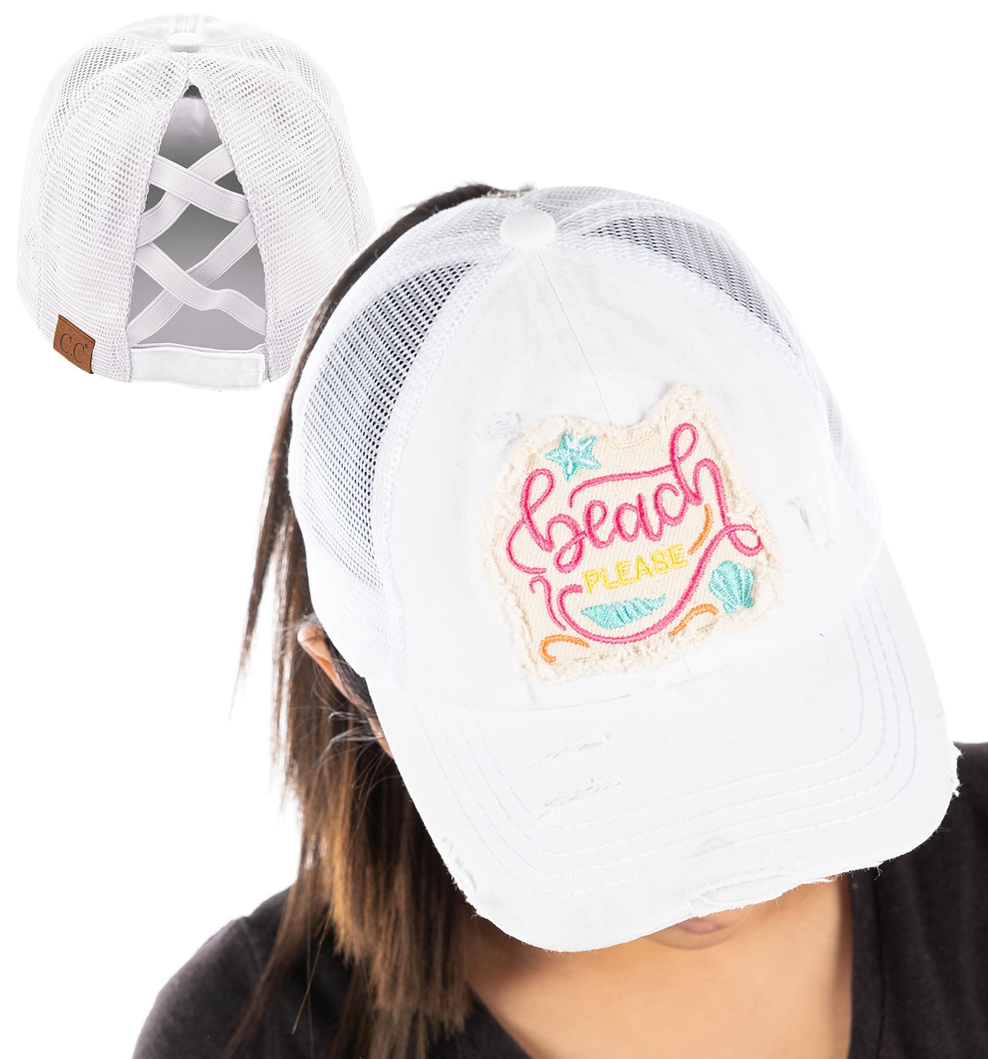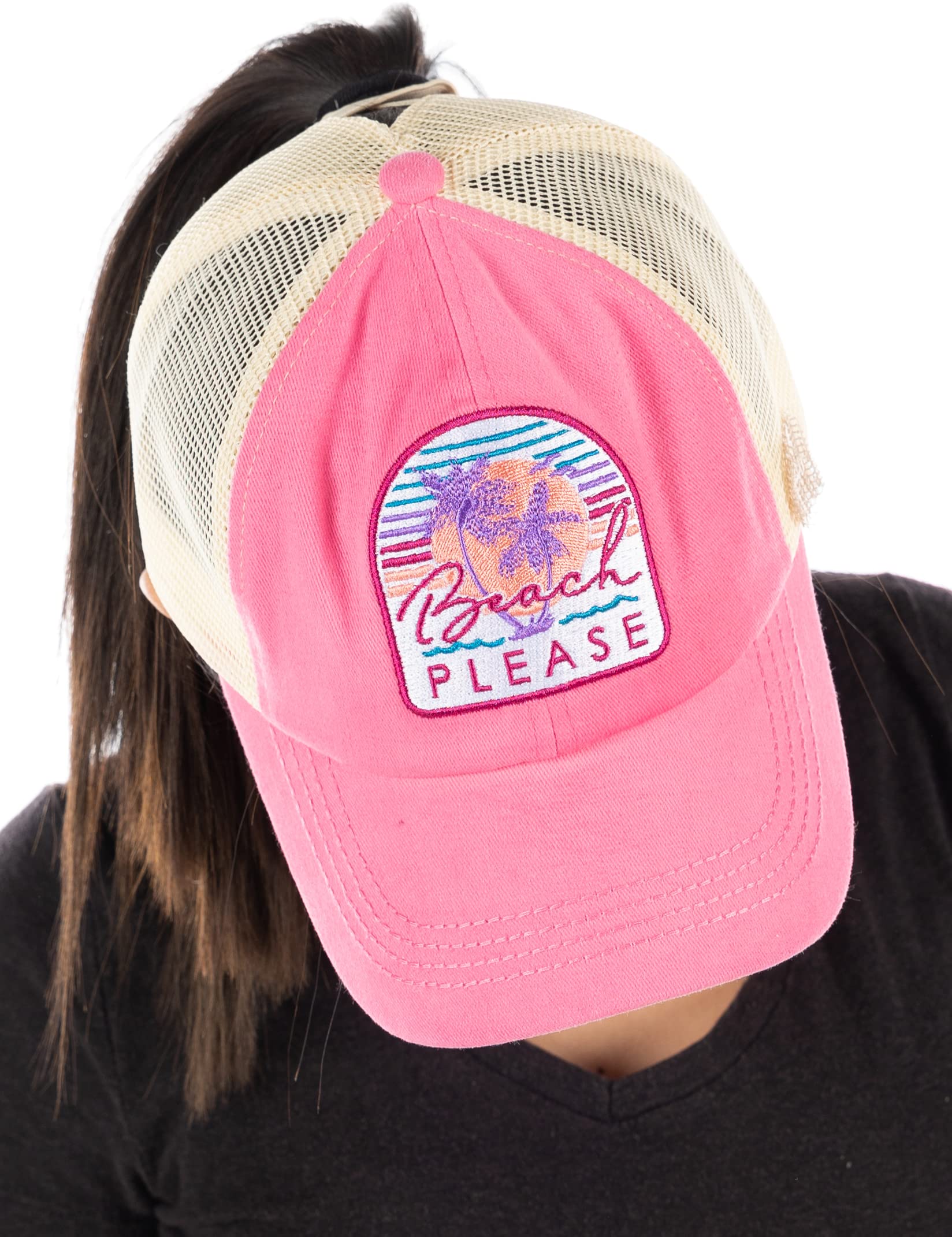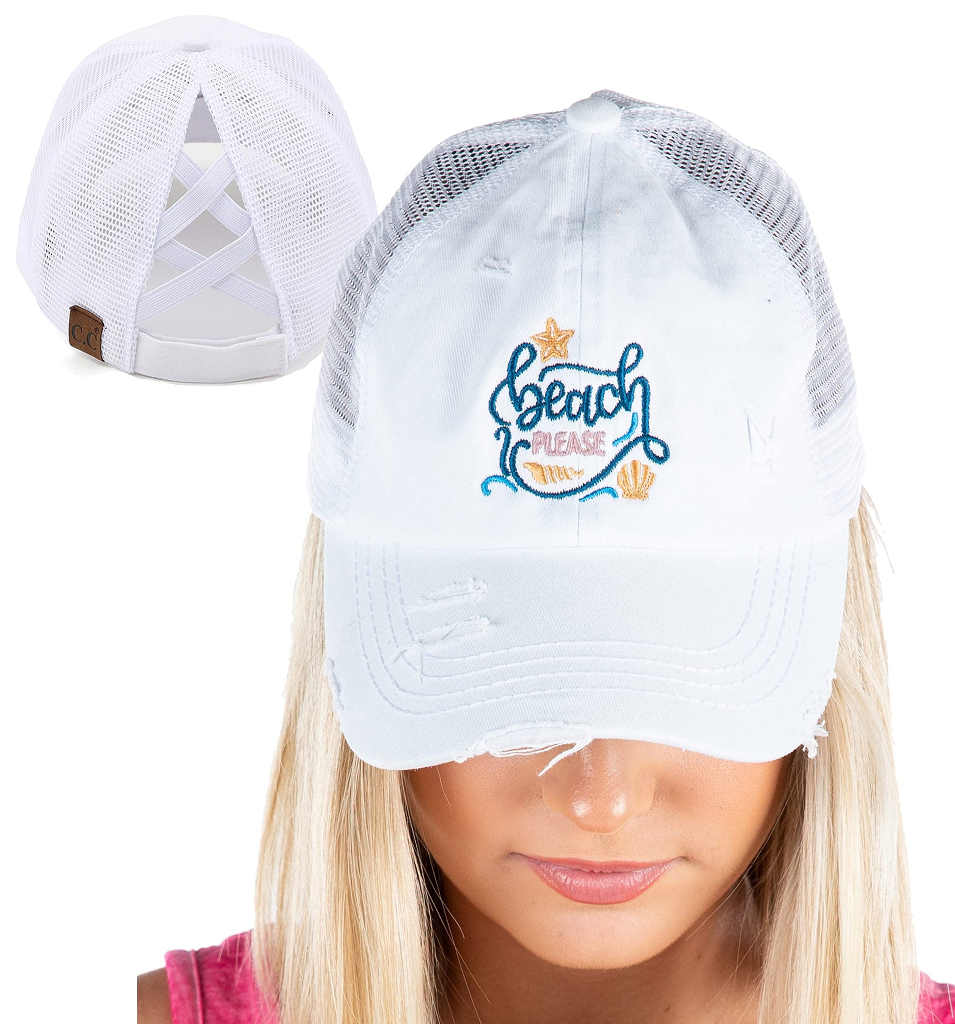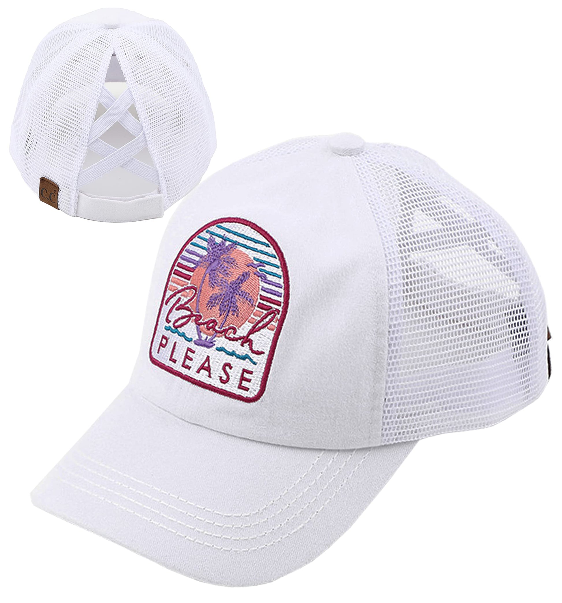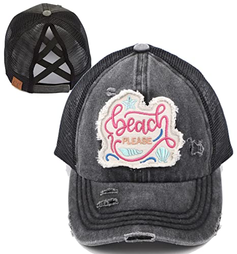 Beach Please Criss Cross Ponytail Hat by Funky Junque