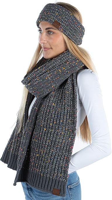 Confetti Knit Lined Headwrap and Infinity Scarf Set by Funky Junque