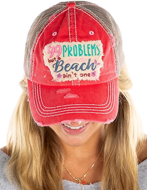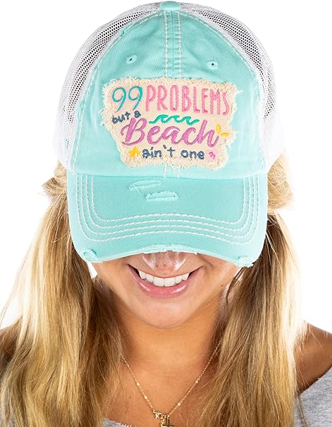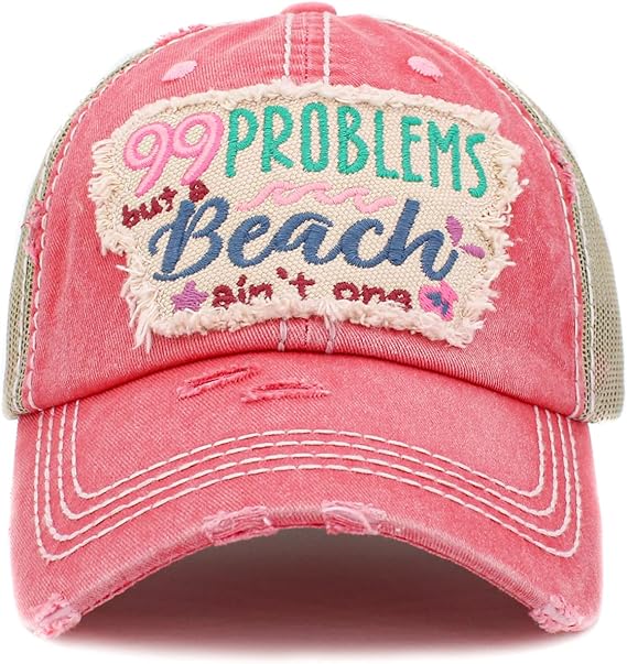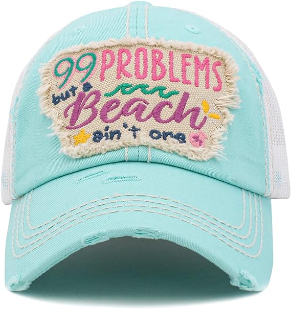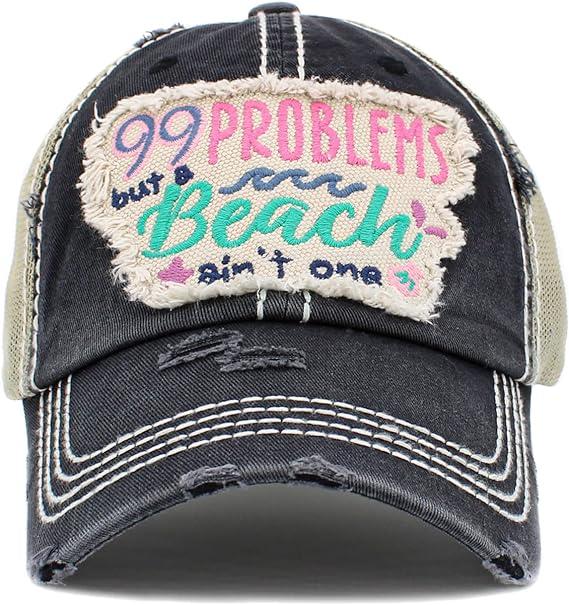 99 Problems But a Beach Aint One Distressed Patch Hat by Funky Junque