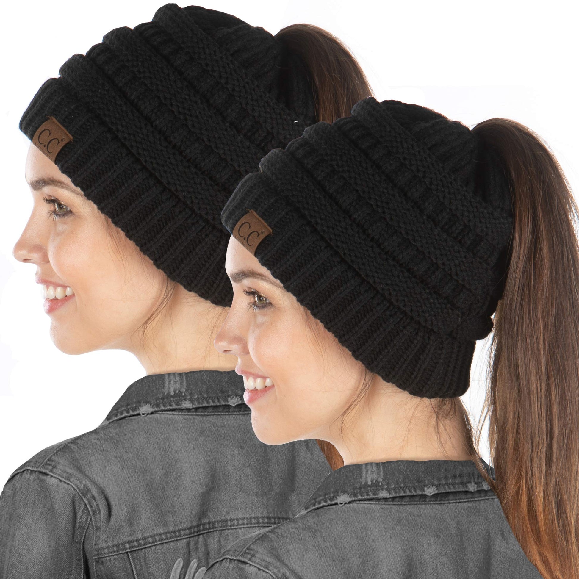 Love beanies AND messy buns? This soft BeanieTail hat is your favorite beanie with a hidden elastic ponytail opening at the top. Pull your hair through and wear with a pony tail or messy bun. Perfect look for all hair types. So versatile - adjust for a high or low ponytail, messy bun, or with your hair down. Great for the harsh cold snow days of fall and winter, but also stylish and cute for the cool days of summer and spring. Available in solid, confetti, sequin, multicolored patterns, and 2 packs. This beanie hat is a prime example of function meeting fashion.