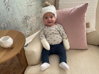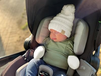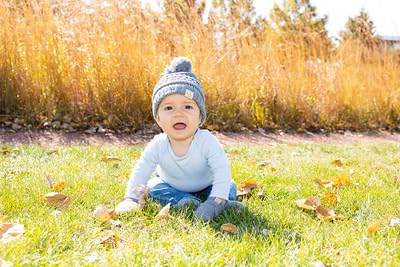 - GREAT FIT: This hat and mitten bundle is recommended for infants between 0-9 months. The beanie measures 6” x 6.5” lying flat (plus a 3” diameter pom) and is ideal for babies with a head circumference between 13” and 17”. The mittens are 4.5” x 2.5”, giving the baby's hands and fingers plenty of space to move flexibly inside the gloves without making them feel too tight or loose. Easy to put on and take off, these accessories are suitable for both baby boys and baby girls alike.