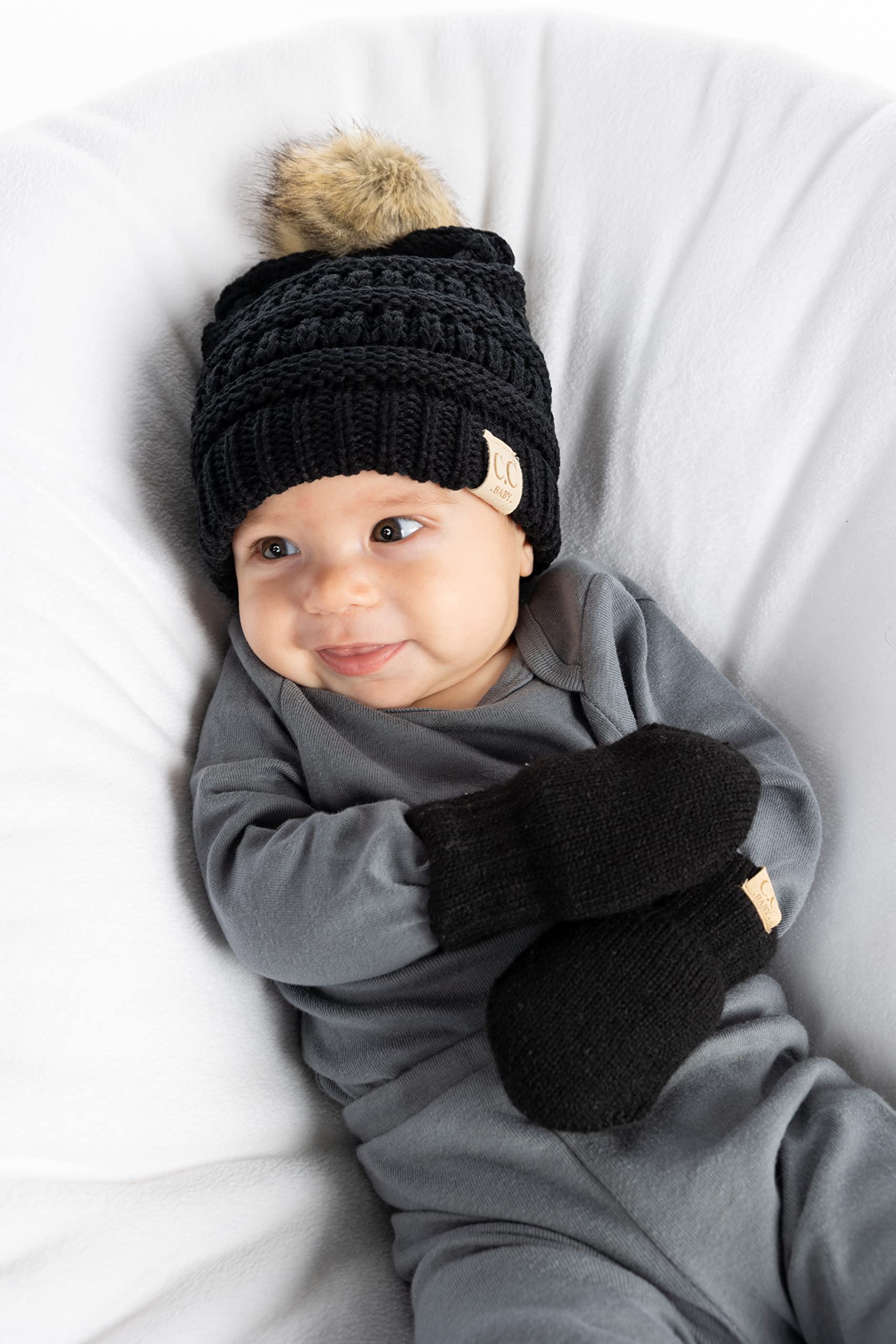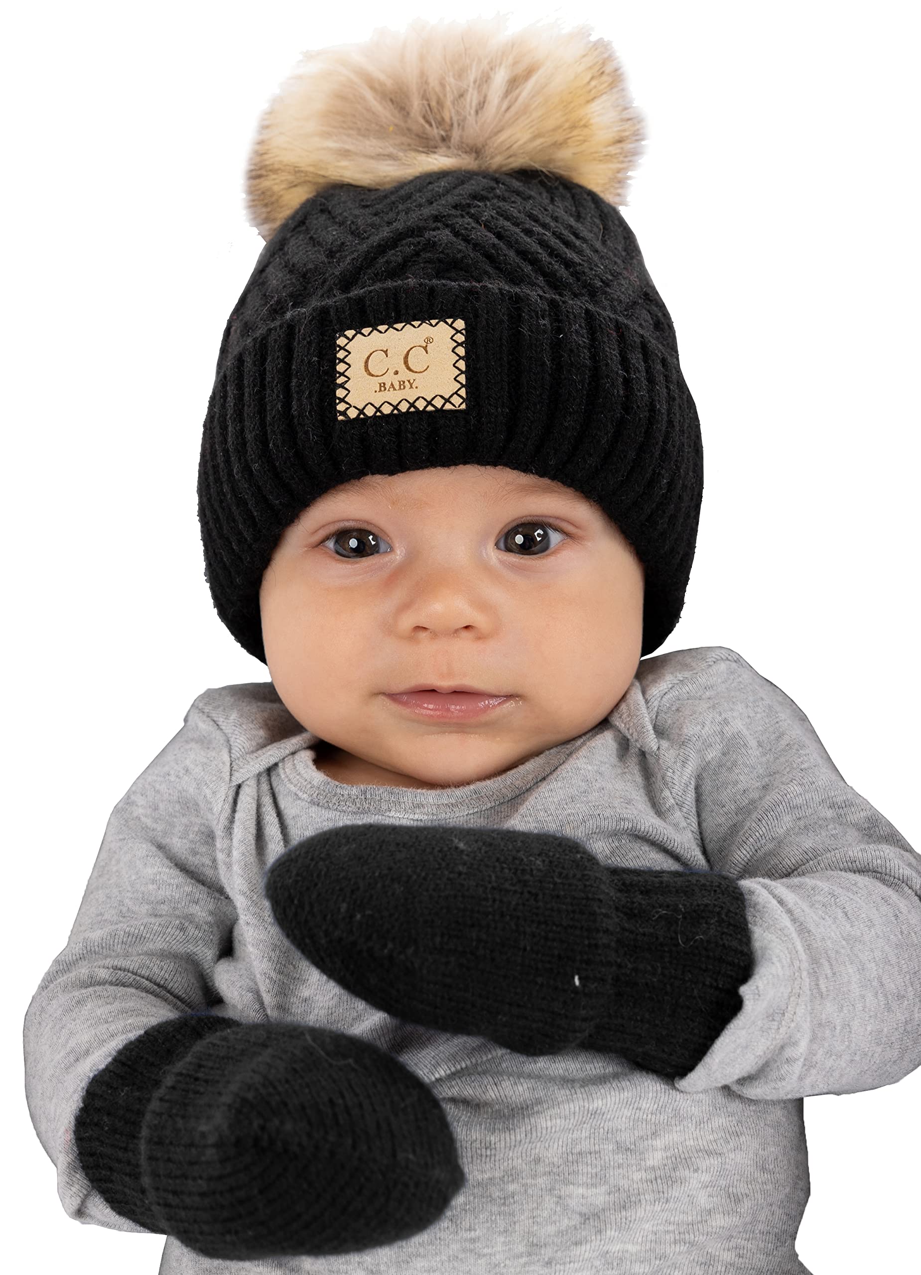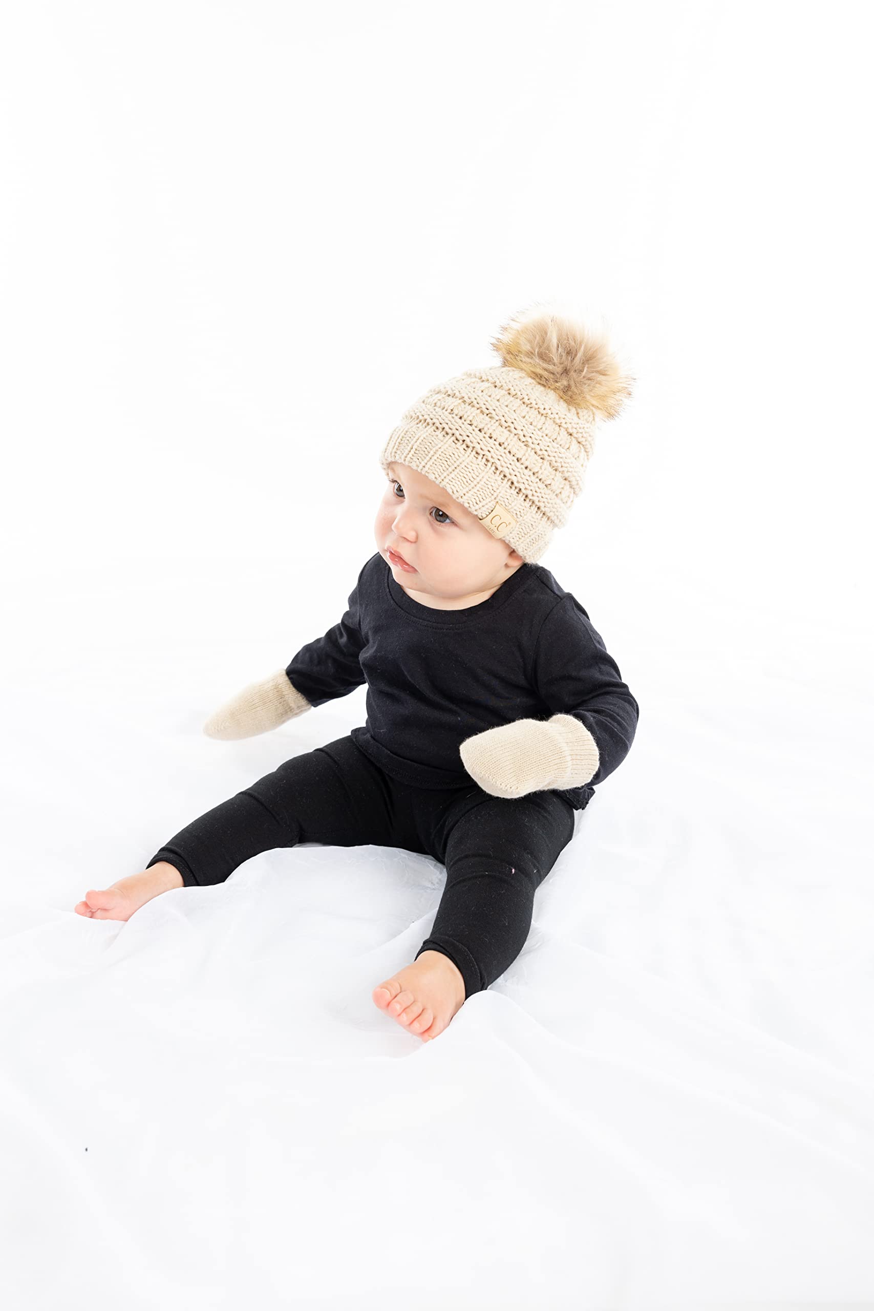 Keep your little infant baby warm and cozy this season in these adorable matching ribbed knit pom beanie and fleece-lined mittens bundle. This hat and glove combo are super soft, perfect for infants aged 0-9 months and come in a variety of colors. Great for the harsh cold snow days of winter, but also stylish and cute for the cool days of fall and spring.