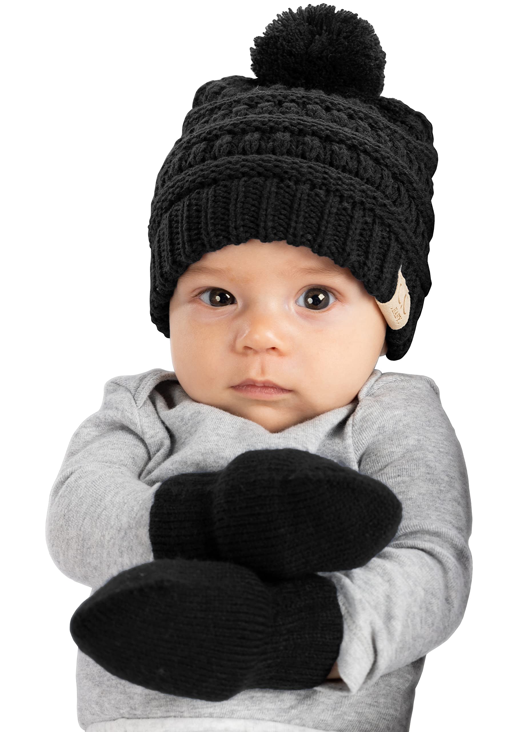 - GREAT LOOK: Your baby will look so cute in these precious beanies and mittens. These thick, ribbed knit hats and sherpa lined gloves will keep your child extra warm and cuddly. Beautifully designed and available in a variety of colors, this unisex beanie and mitten set will look fabulous on your little angel and is perfect when the weather turns from warm to snuggly. These hats and mittens look good with winter clothes, coats, boots, socks, scarves, booties, onesies, blankets and more.