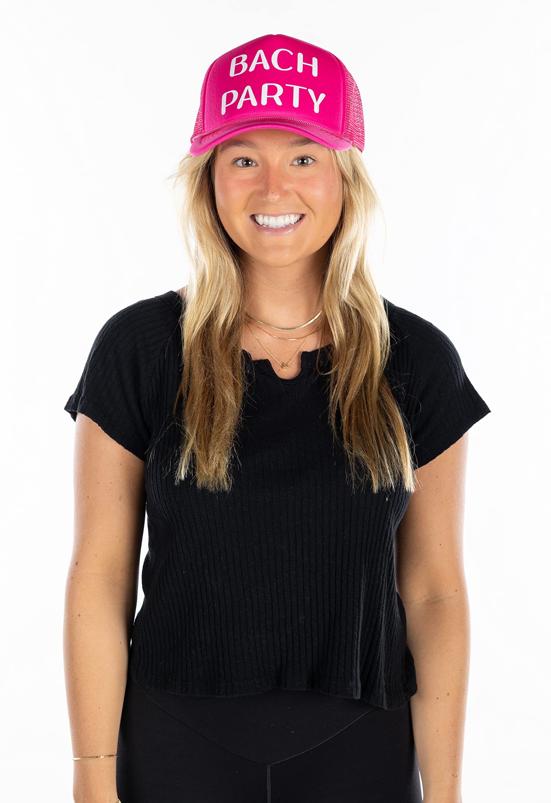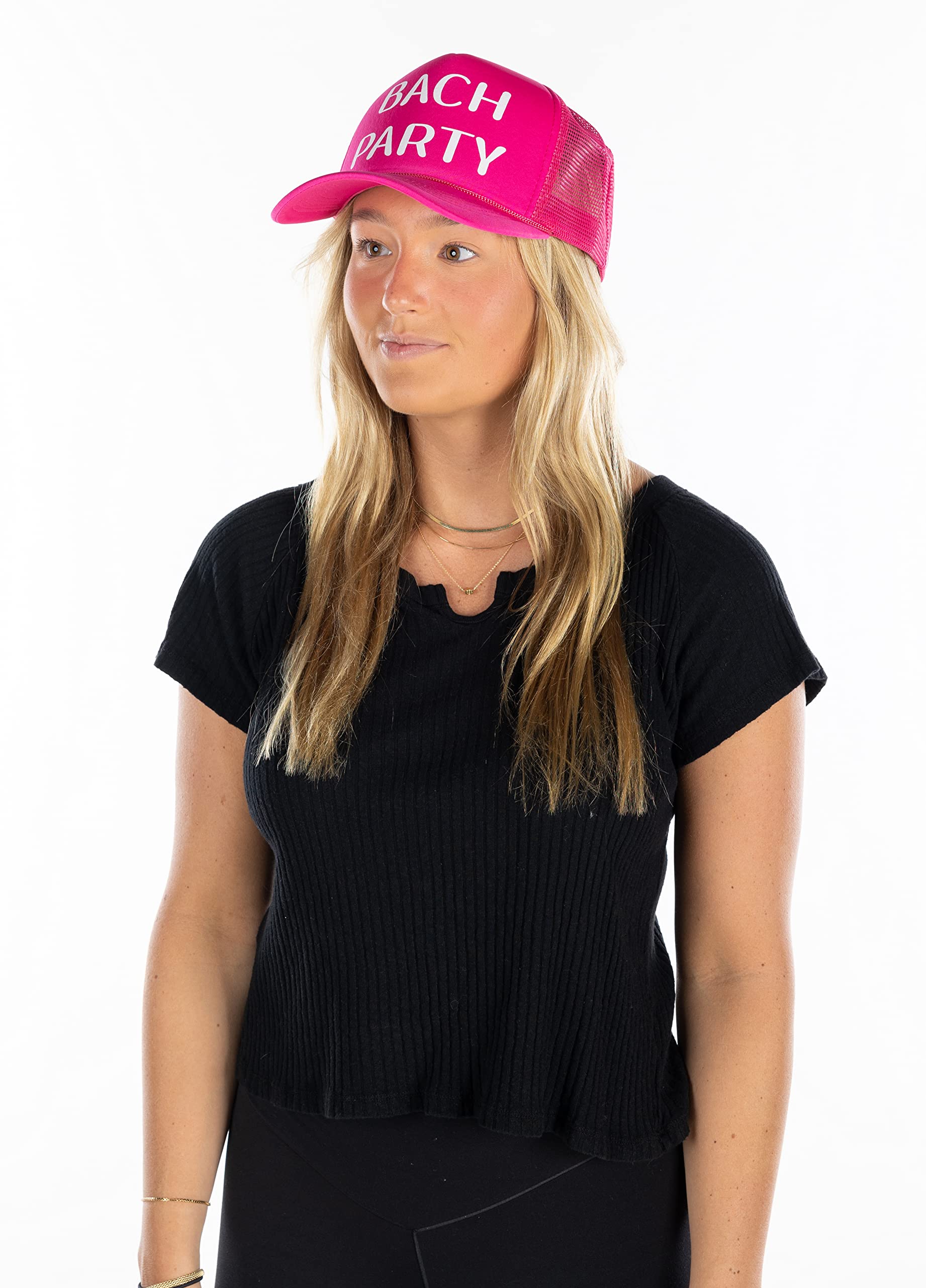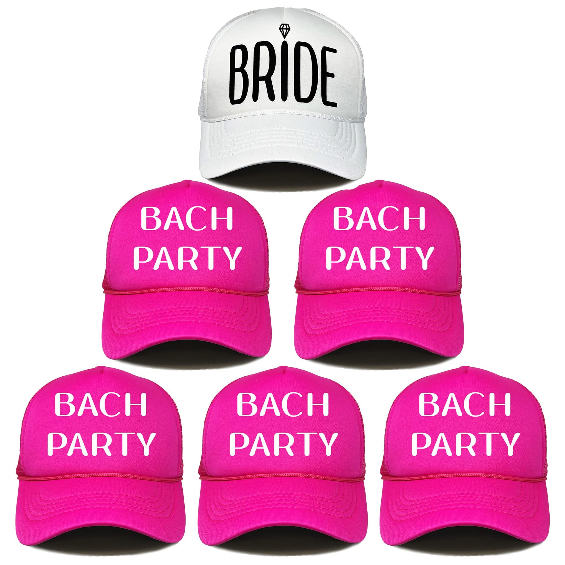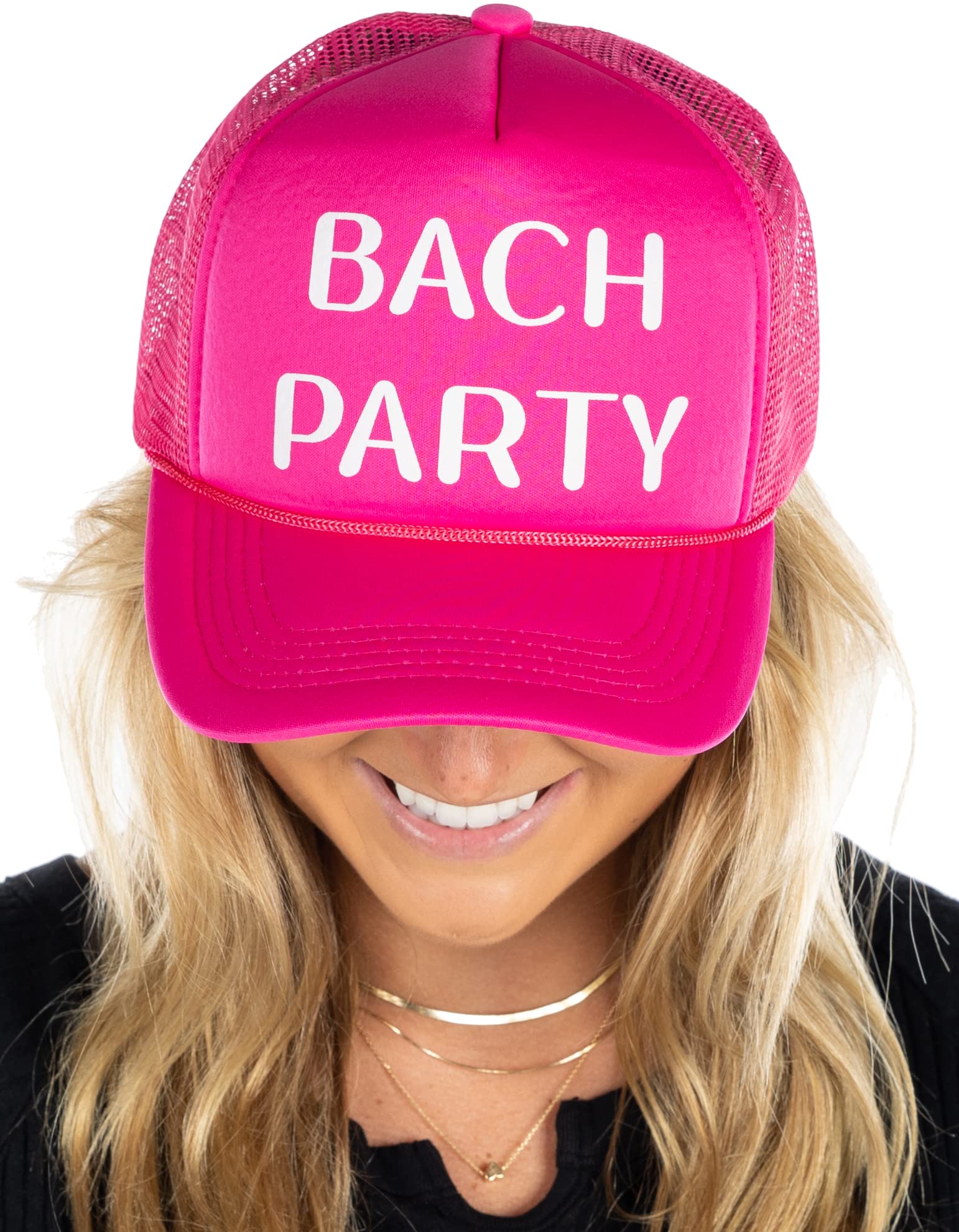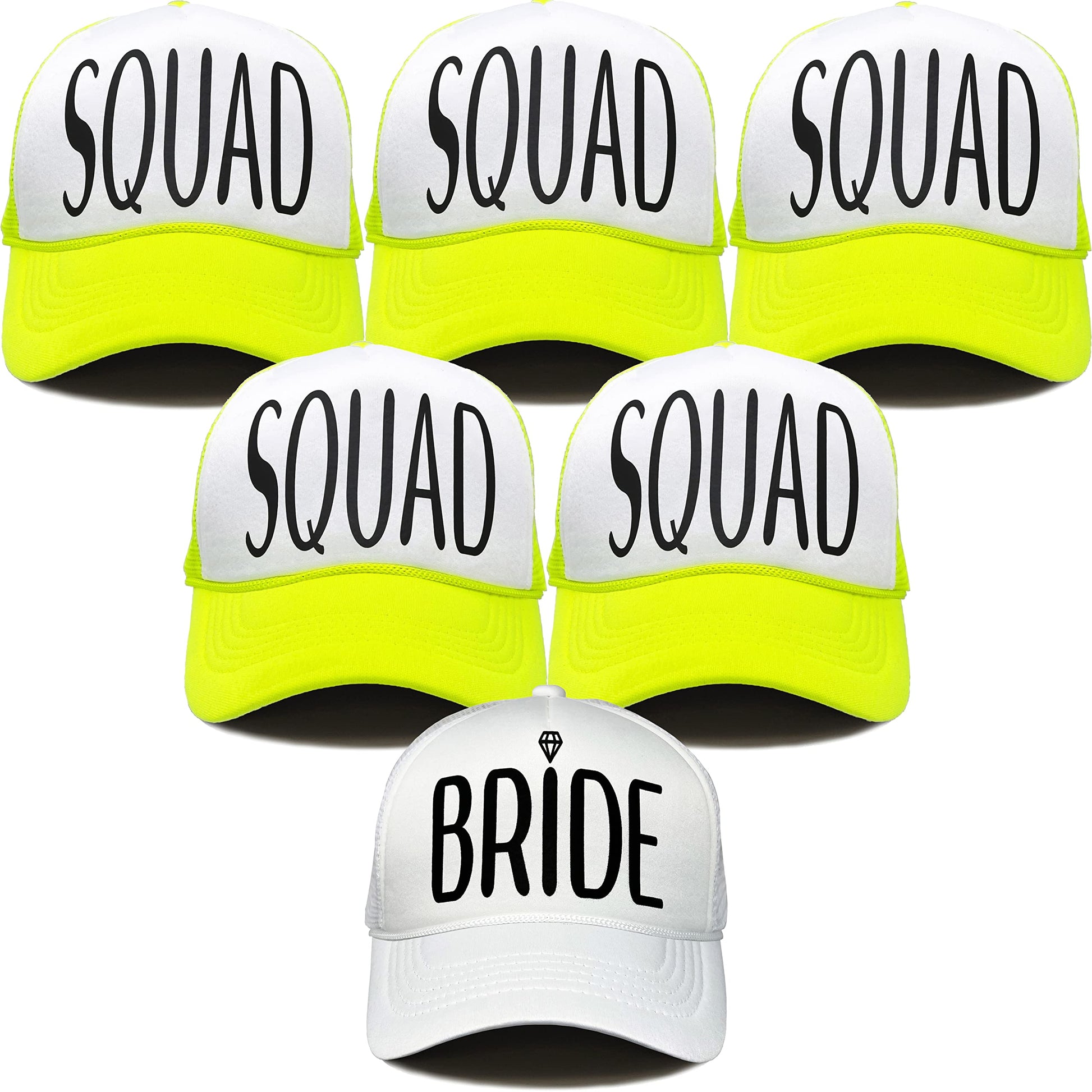 - PARTY FAVORITES: These hats make for amazing photo ops! Just imagine all the fun and silly photos you can take with your bride tribe sporting matching hats. Whether you're attending a birthday party, bachelorette party, bridal shower, pool party or a holiday celebration, our foam trucker hats will show off your playful side. Whether you're posing for a group shot or snapping some silly selfies, these black, white, and bright neon caps are guaranteed to bring a smile to everyone's face.