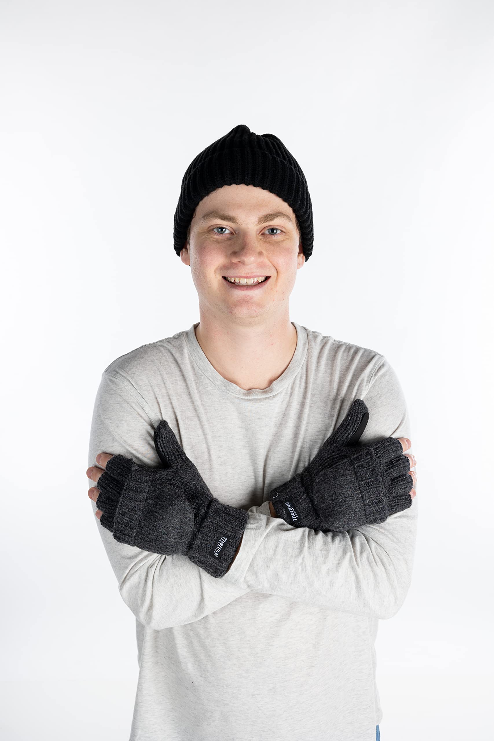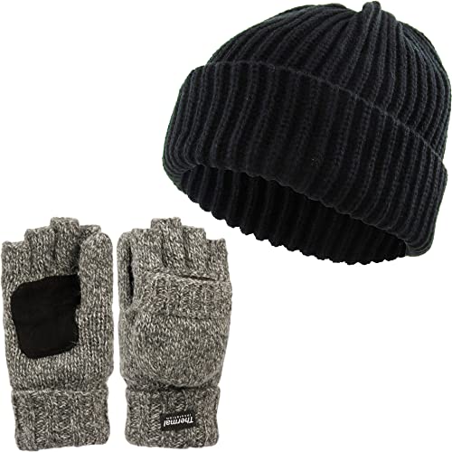- GREAT LOOK: These classic knit beanies and insulated wool convertible mittens look great with all styles of clothing and outerwear. Throw this combo on with jackets, coats, wool fedoras or even sweaters and sweatshirts. Choose from black, charcoal, grey or beige to mix and match with your favorite outfit. Especially convenient to carry and can be folded, put in your pockets, or worn while on the train or in transit.