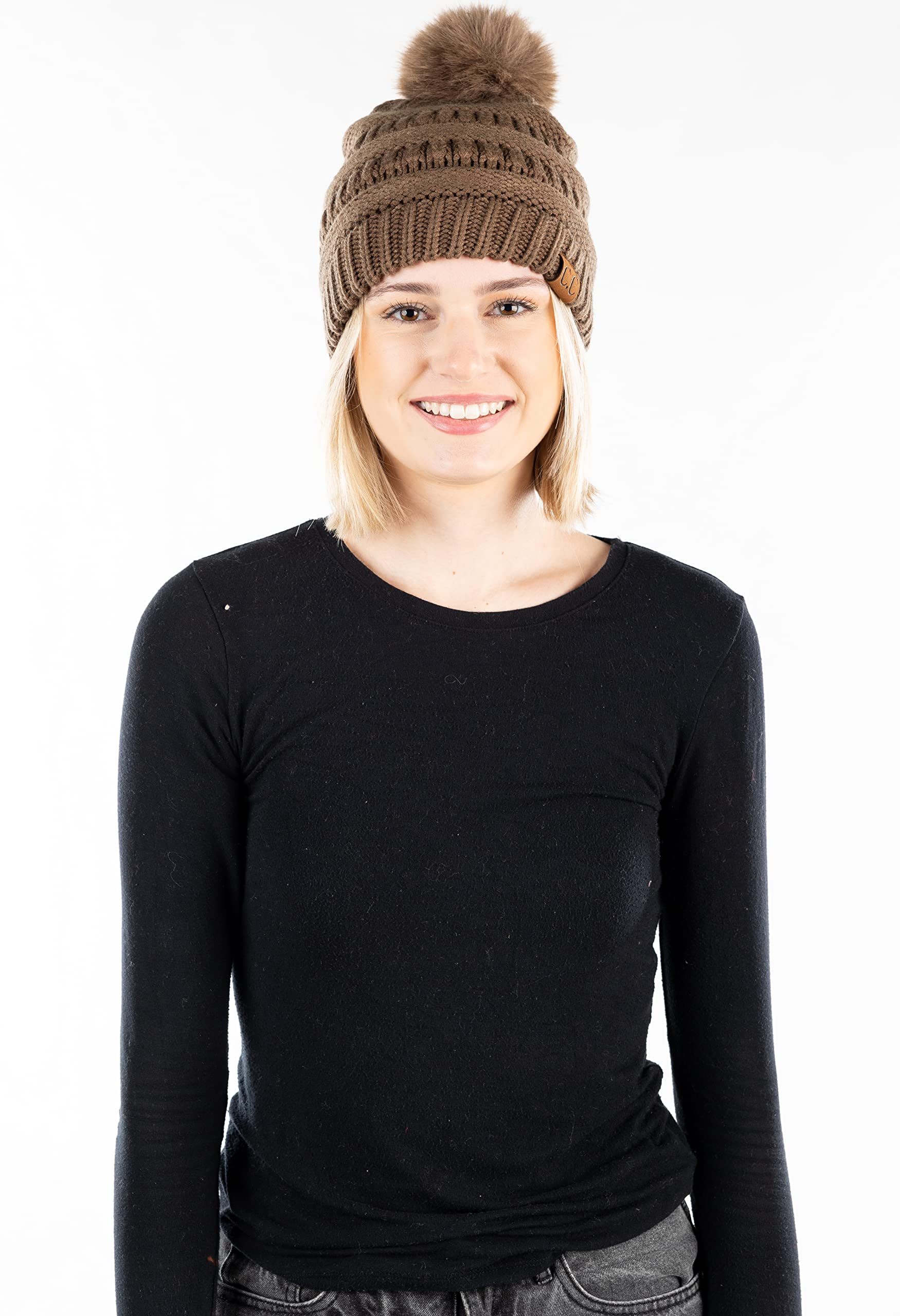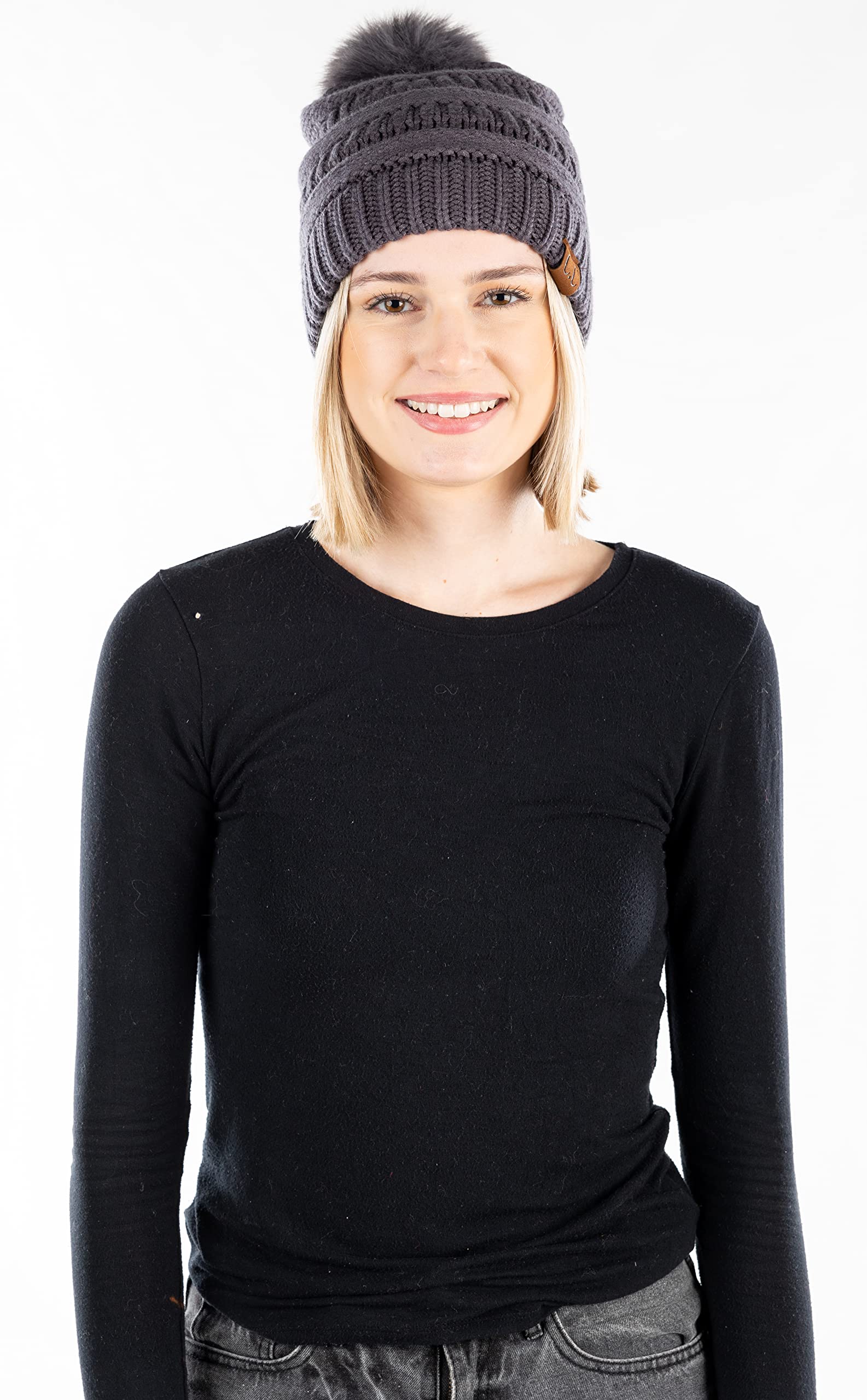 Rock this fashionable pom beanie all winter long! With our new material composition this is an incredibly soft and comfortable hat. This faux fur pom beanie is also a great hat to have for frigid, snowy days when the below zero weather freezes and numbs your ears, while you still look your best. Super snuggly and soft, it is perfect for you and makes a great gift for your daughter, sister, niece, cousin, friend, coworker, and beyond!