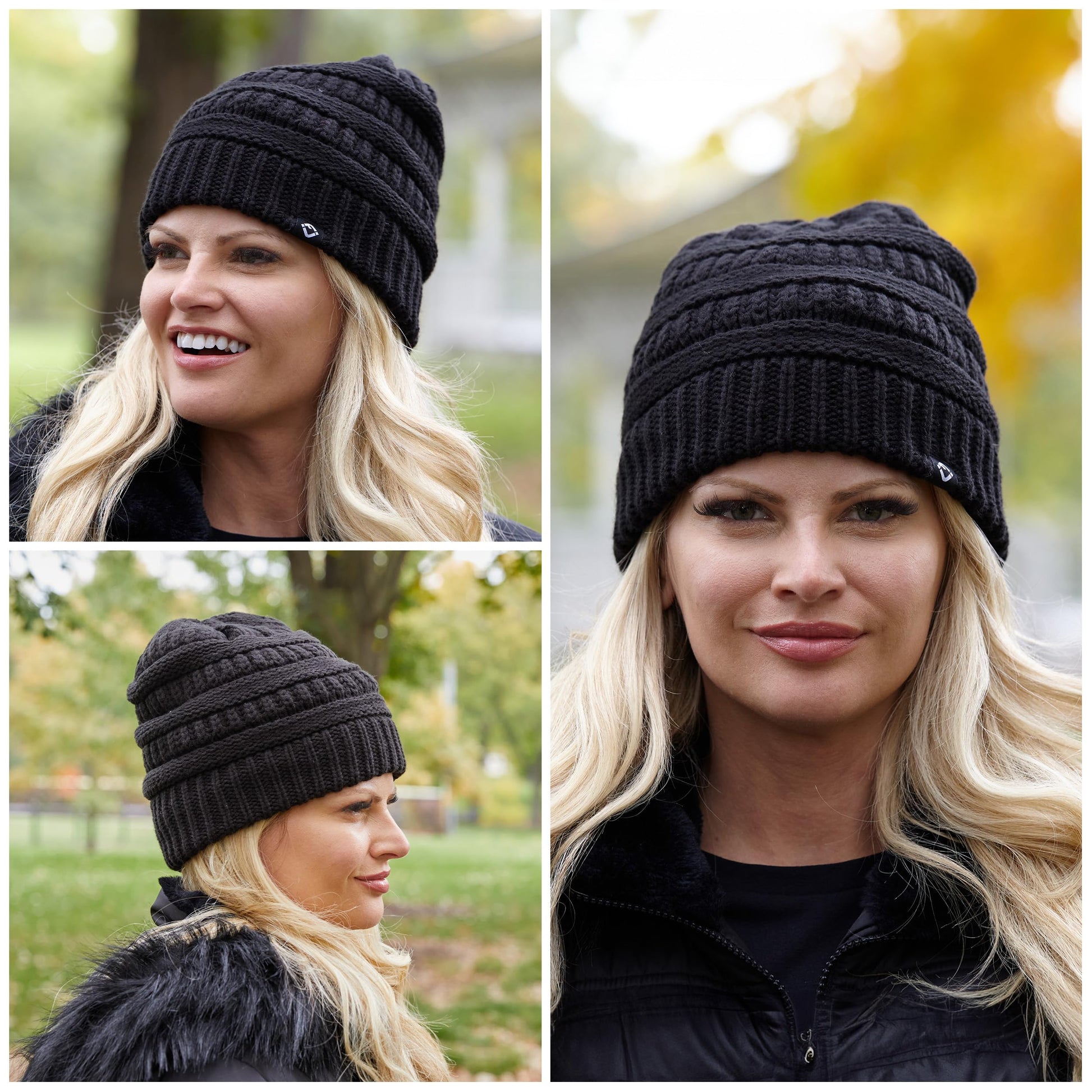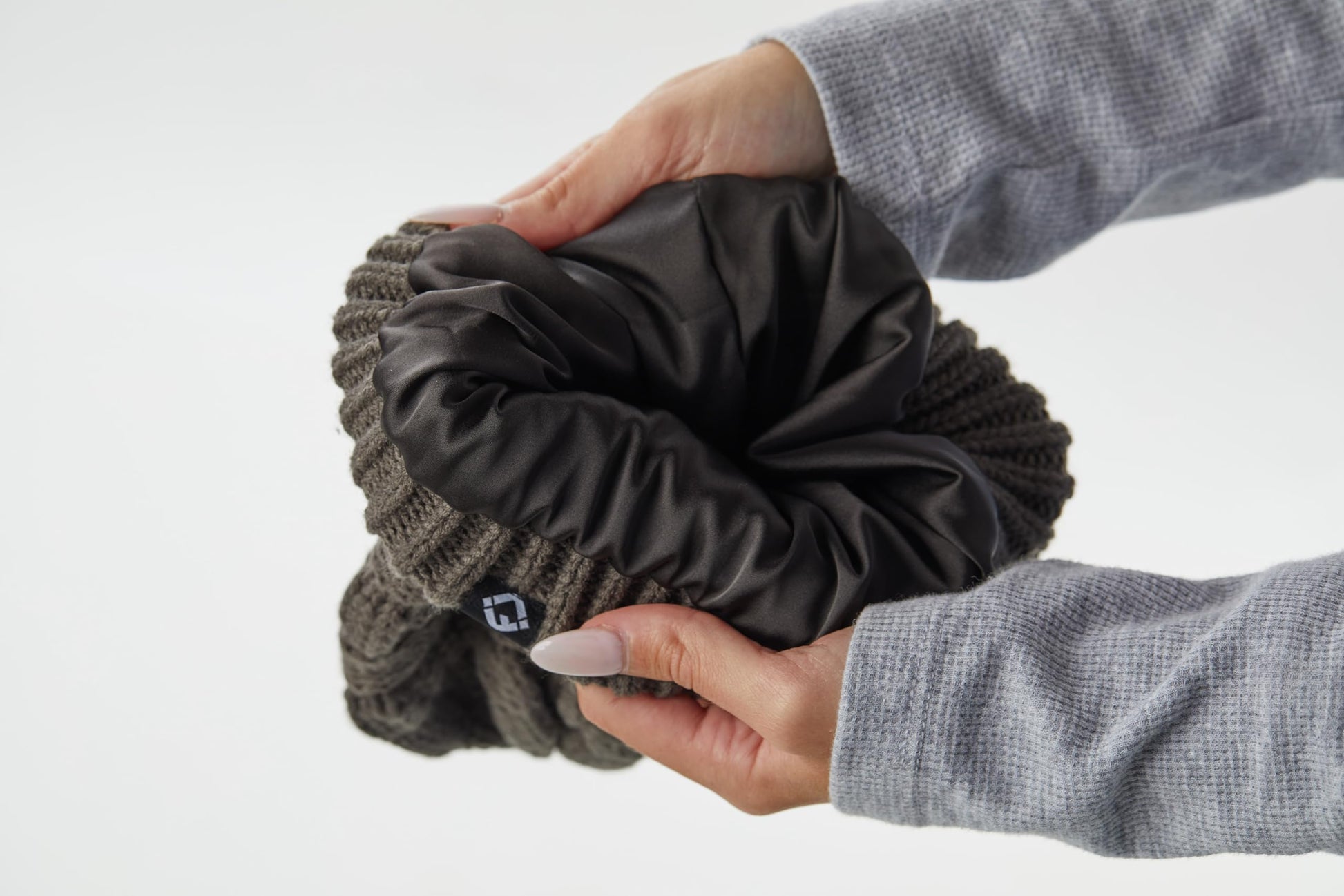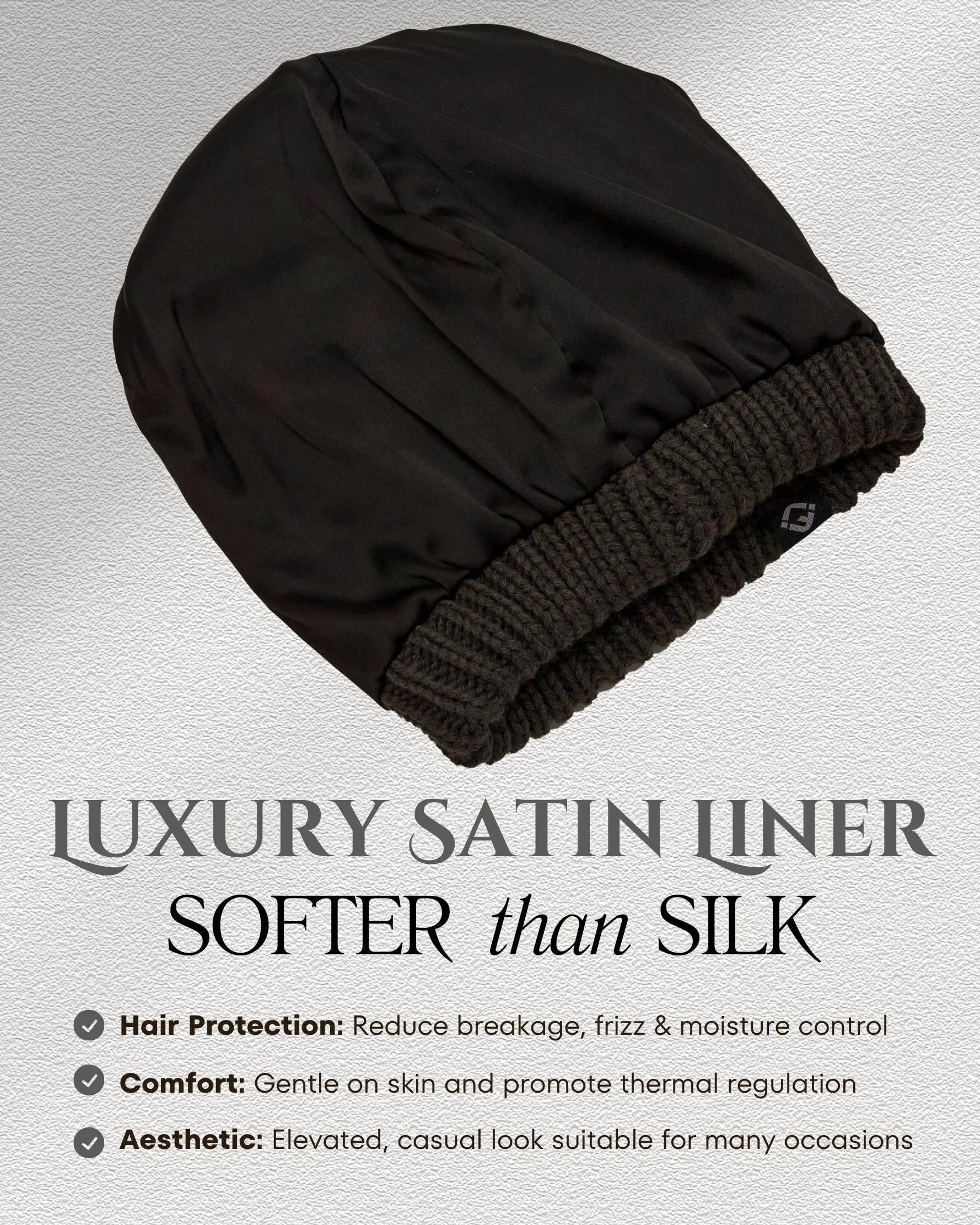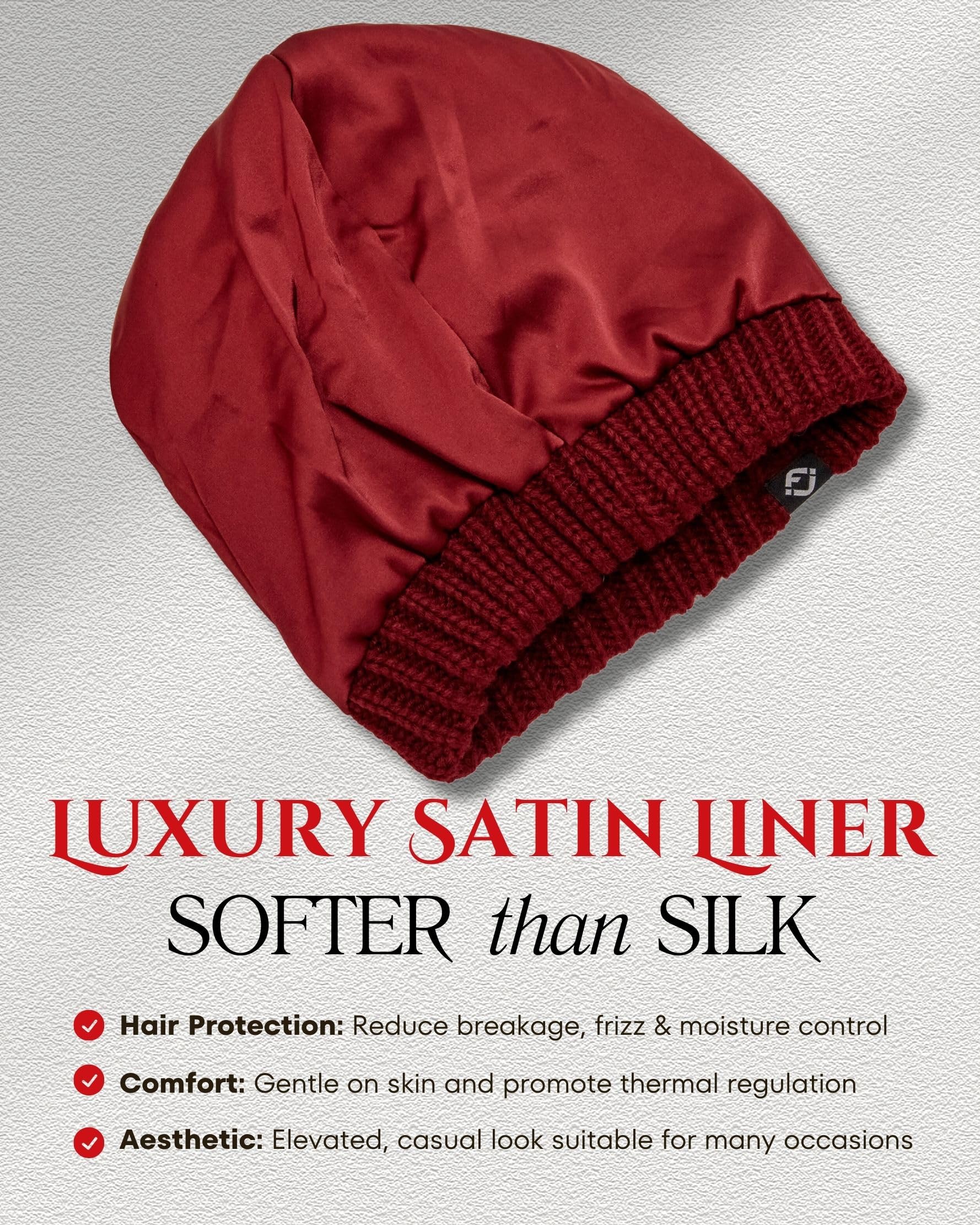 Crafted from a premium 100% acrylic, this beanie features a luxurious polyester satin lining, to ensure that your hair remains smooth and frizz-free. Designed for durability, the outer layer is resistant to pilling, stretching, and fading, ensuring it remains in top condition season after season. The satin lining adds another layer of resilience, providing a smooth barrier that minimizes friction and wear on both the beanie and your hair. Hand wash cold. Lay flat or hang to dry.