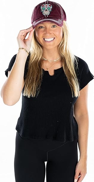 Sugar Skull Distressed Patch Hat by Funky Junque