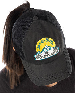 Take Me to the Mountains Criss Cross Ponytail Hat by Funky Junque