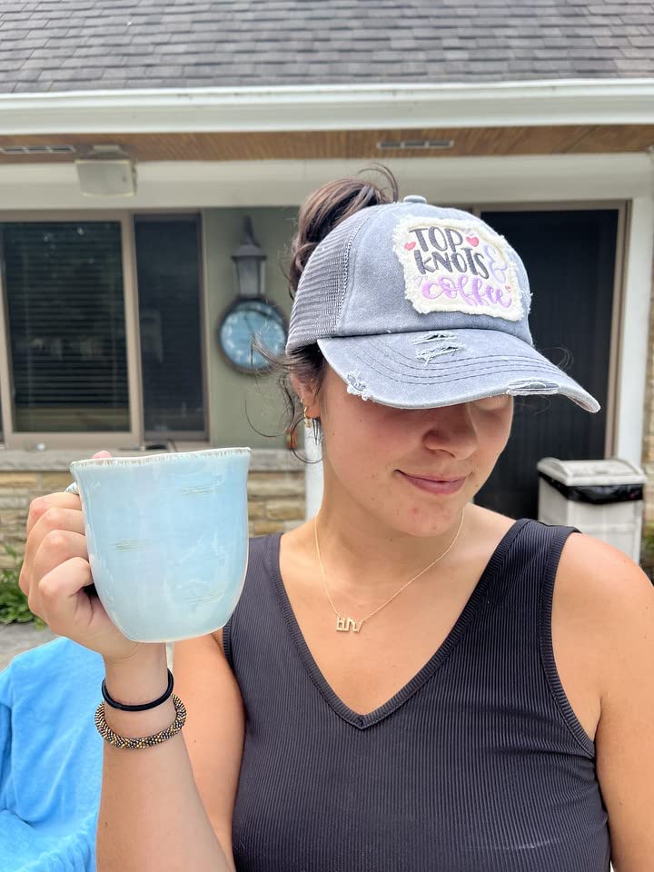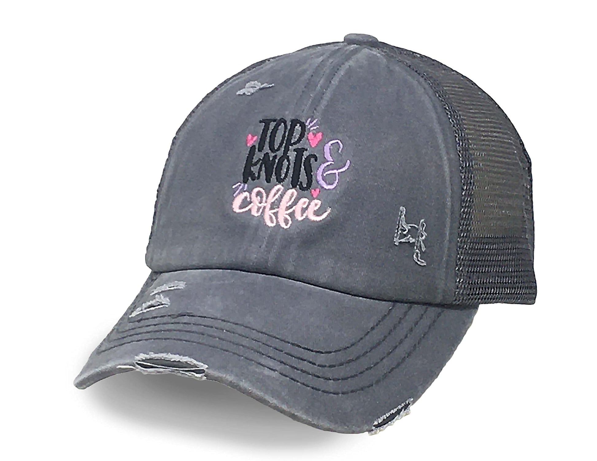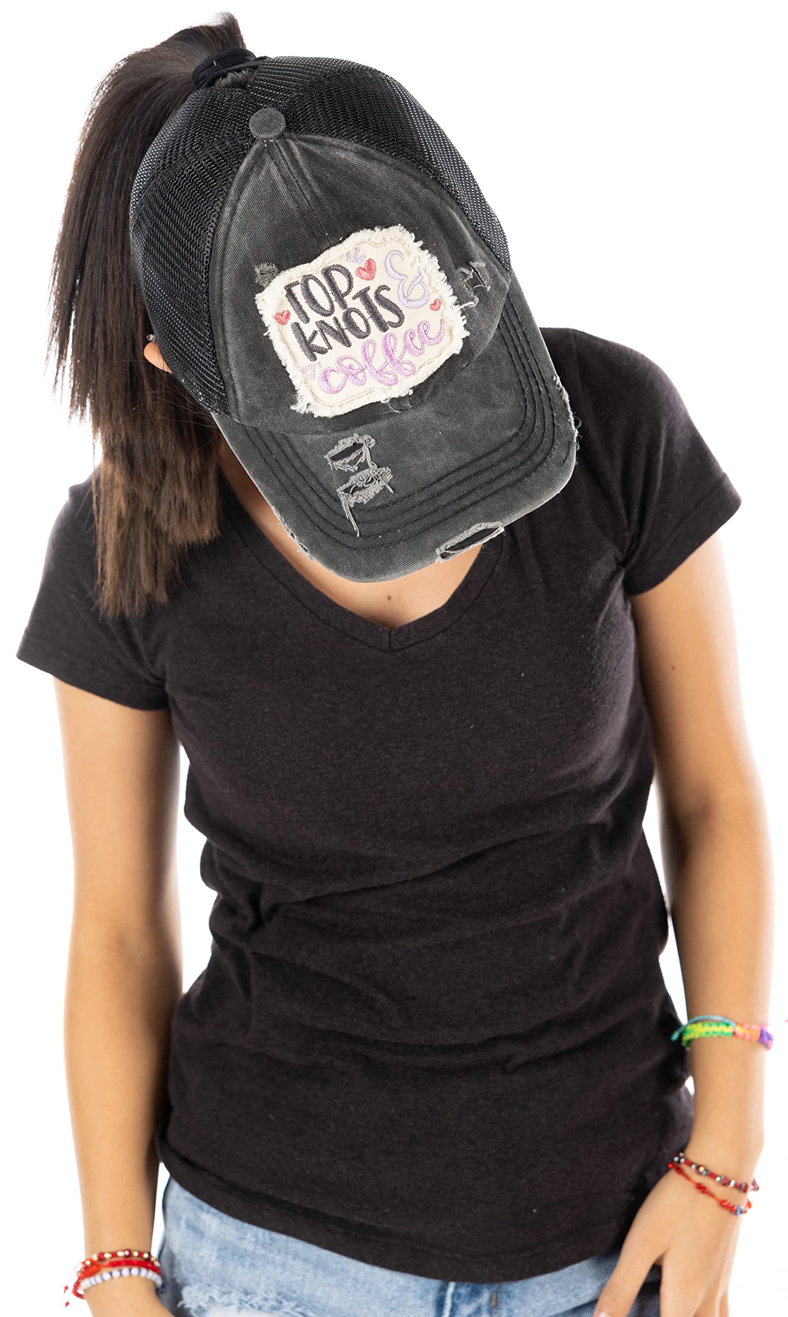 Top Knots and Coffee Criss Cross Ponytail Hat by Funky Junque
