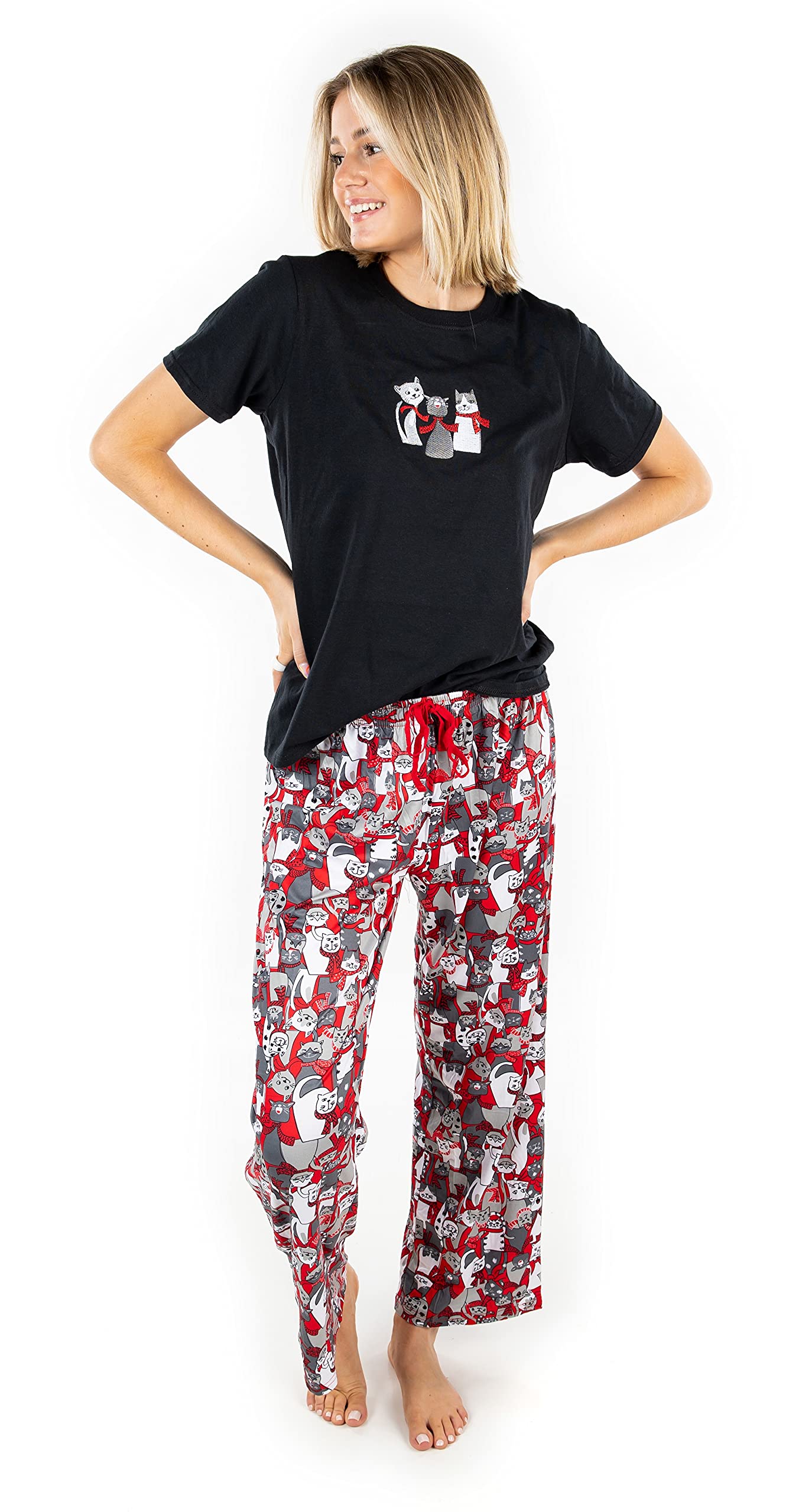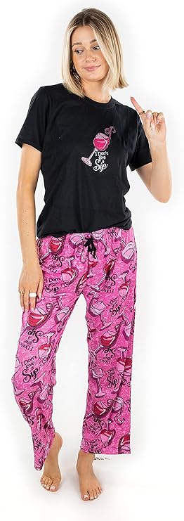 Womens Pajama Set T-Shirt Top Graphic Tee Pajama Pant Lightweight Lounge PJ Sleepwear
