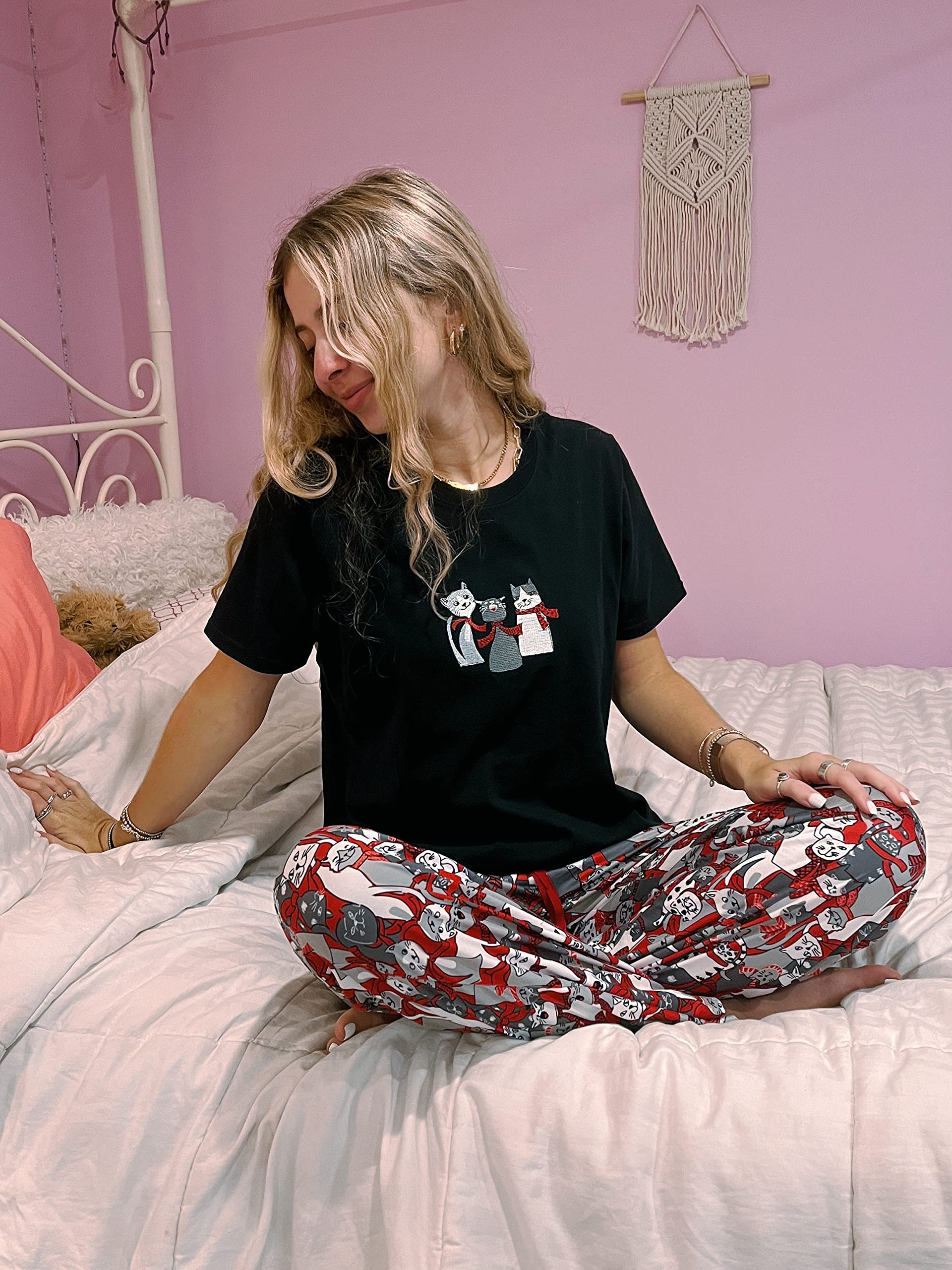 Stay cozy and look adorable in these soft, lightweight lounge pajama pant and t-shirt sets. In multiple Christmas, Wedding and other cute patterns. They are great for every night and for the special ocassions like your wedding and Christman. Comfortable and stretchy, these pants are great for lounging at home on a weekend or to come home to slip into after work.